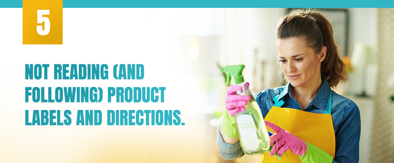 It will just take at least 30 seconds to a few minutes, so why skip it? Not reading the label on the cleaning products before using them is a surefire way to make a cleaning fail. You’ll save time and effort (and extra minutes of scrubbing) when you follow the directions on the product, especially if it needs to “sit” for a period of time to do its magic.